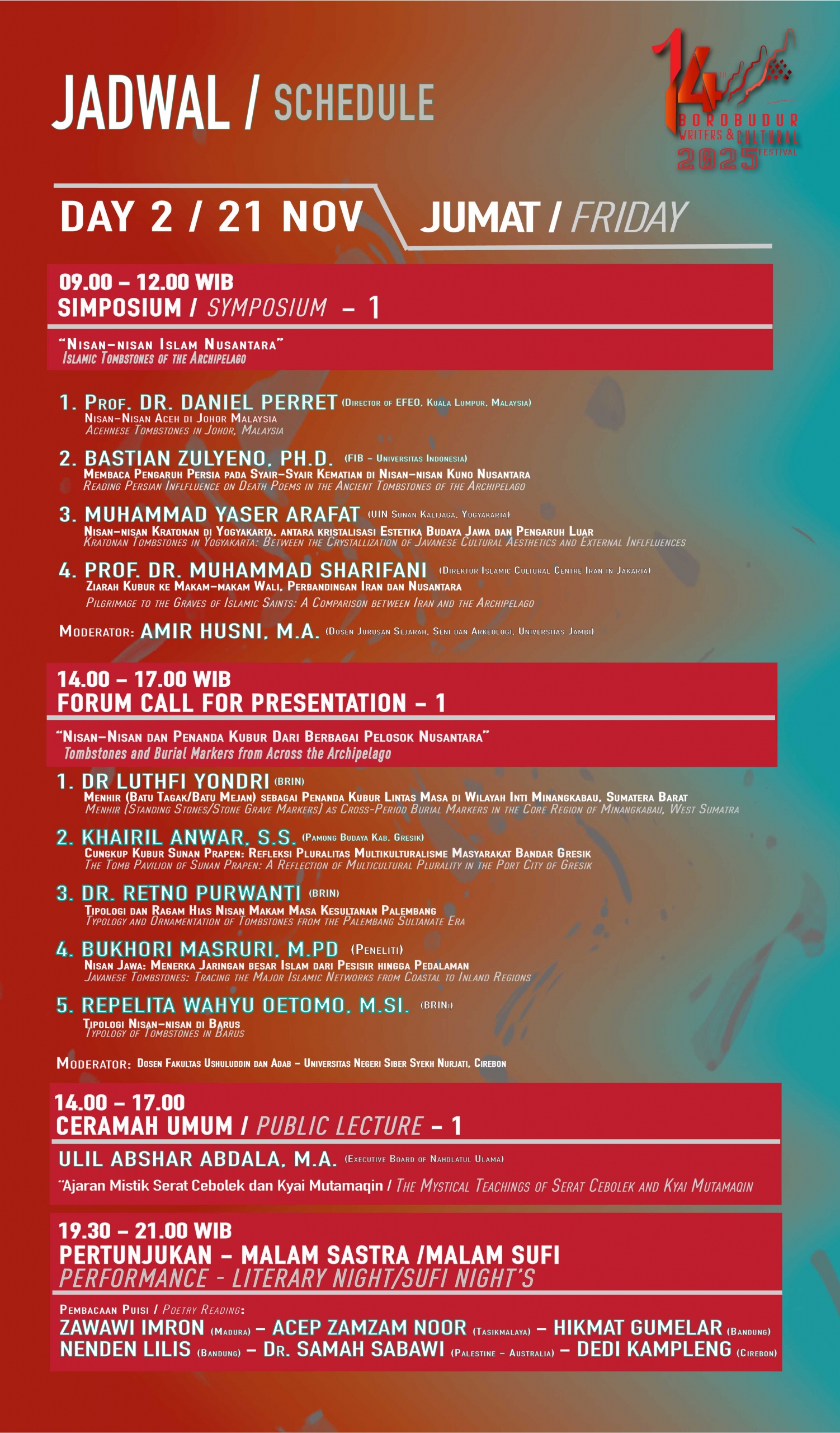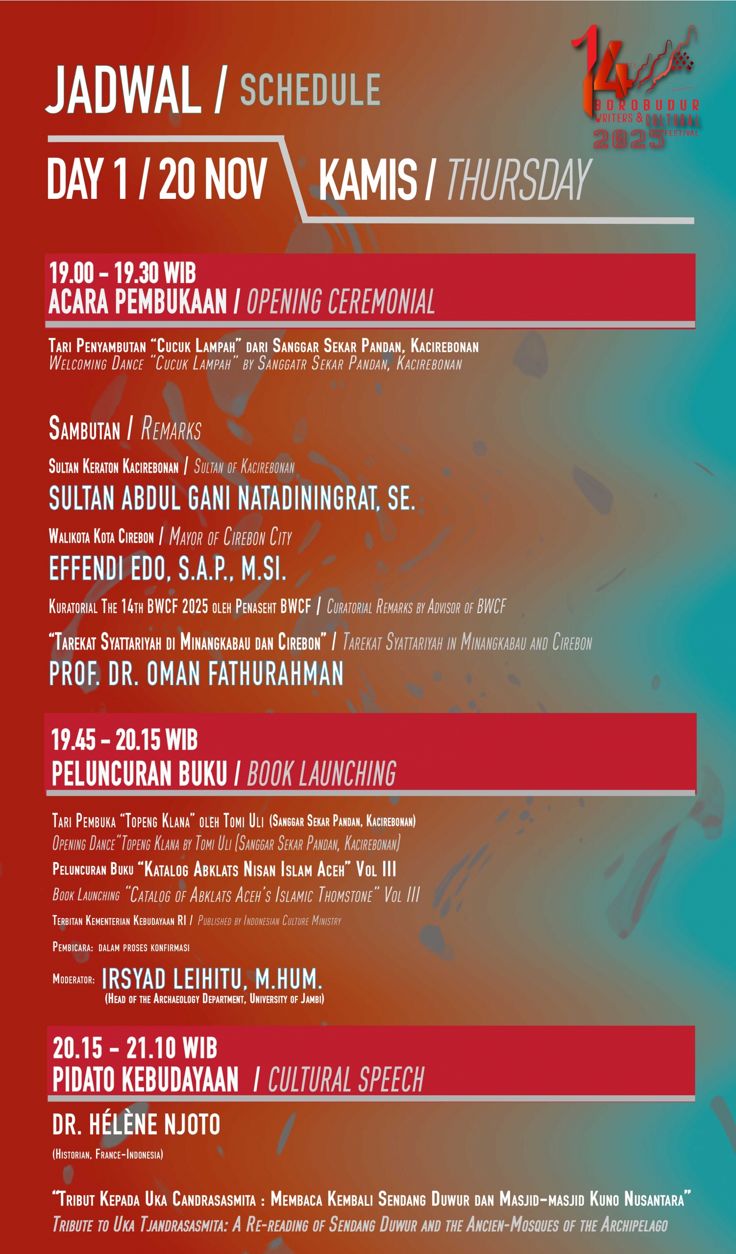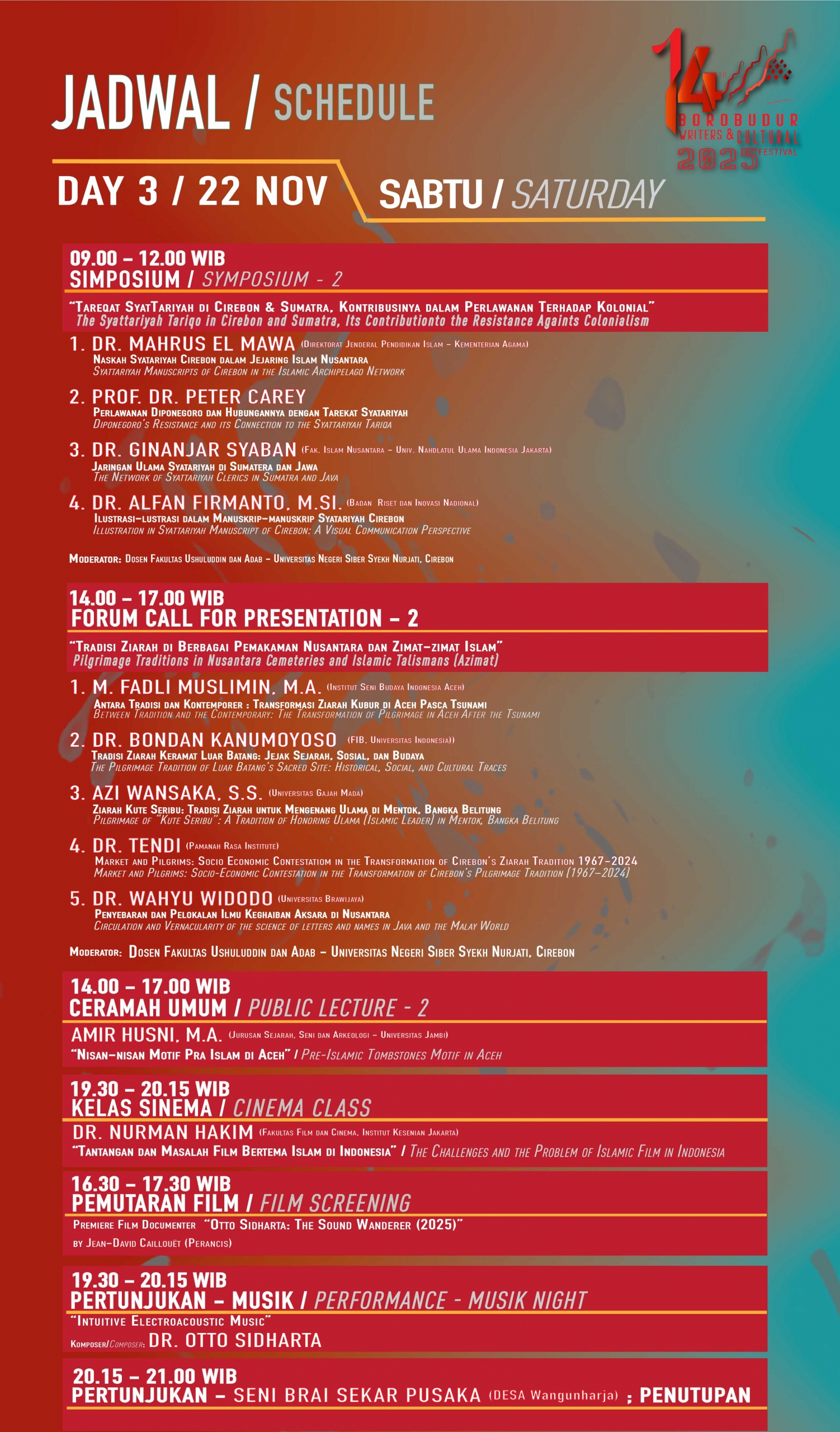 Sejak tahun 2023, pelaksanaan Borobudur Writers & Cultural Festival (BWCF) mengusung konsep berpindah kota atau “moving festival,” setelah 10 tahun rutin dilaksanakan di area Candi Borobudur. Berpindah-pindahnya lokasi BWCF ini, bertujuan untuk melebarkan jangkauan pelaksanaan dan penerima manfaat agar bisa merangkul lebih luas lagi komunitas dan institusi penggerak-pemerhati kebudayaan, termasuk wisata religi dan heritage.